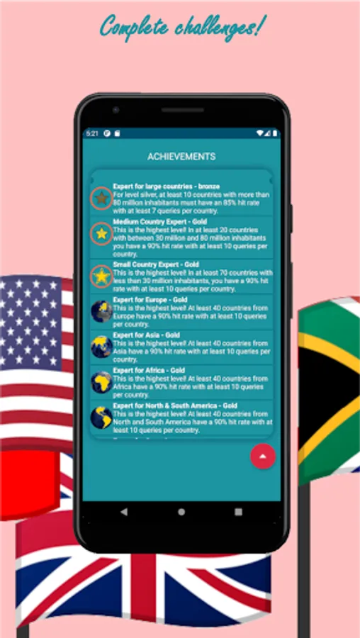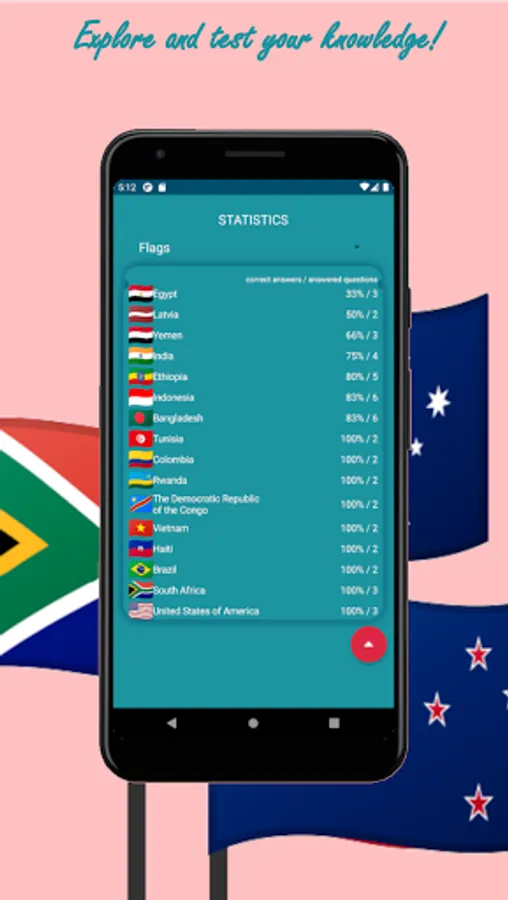Quiz statistics are kept for each country, e.g. for the flags and capitals. So you can find out what you know very well in the quiz and where there is potential for improvement and you can still learn something.