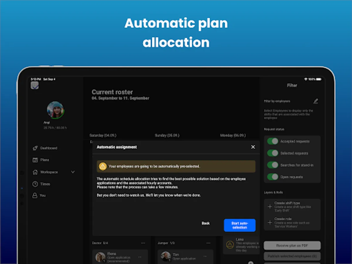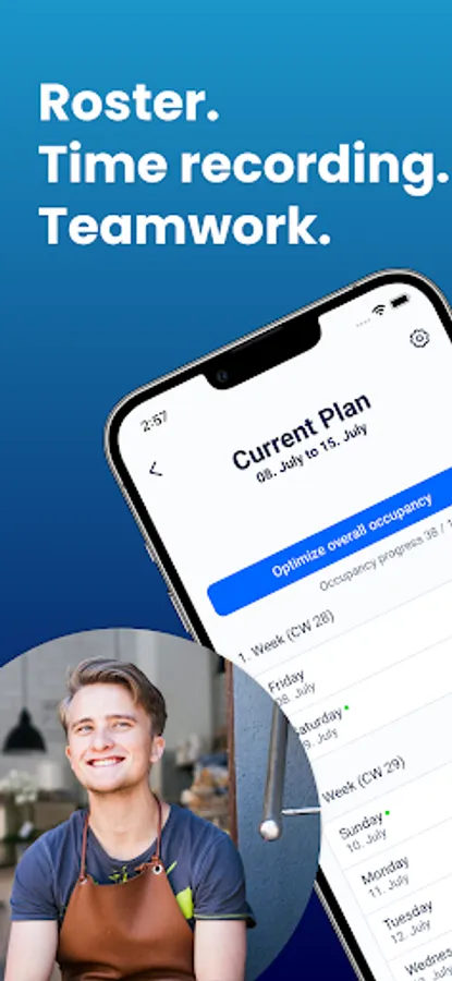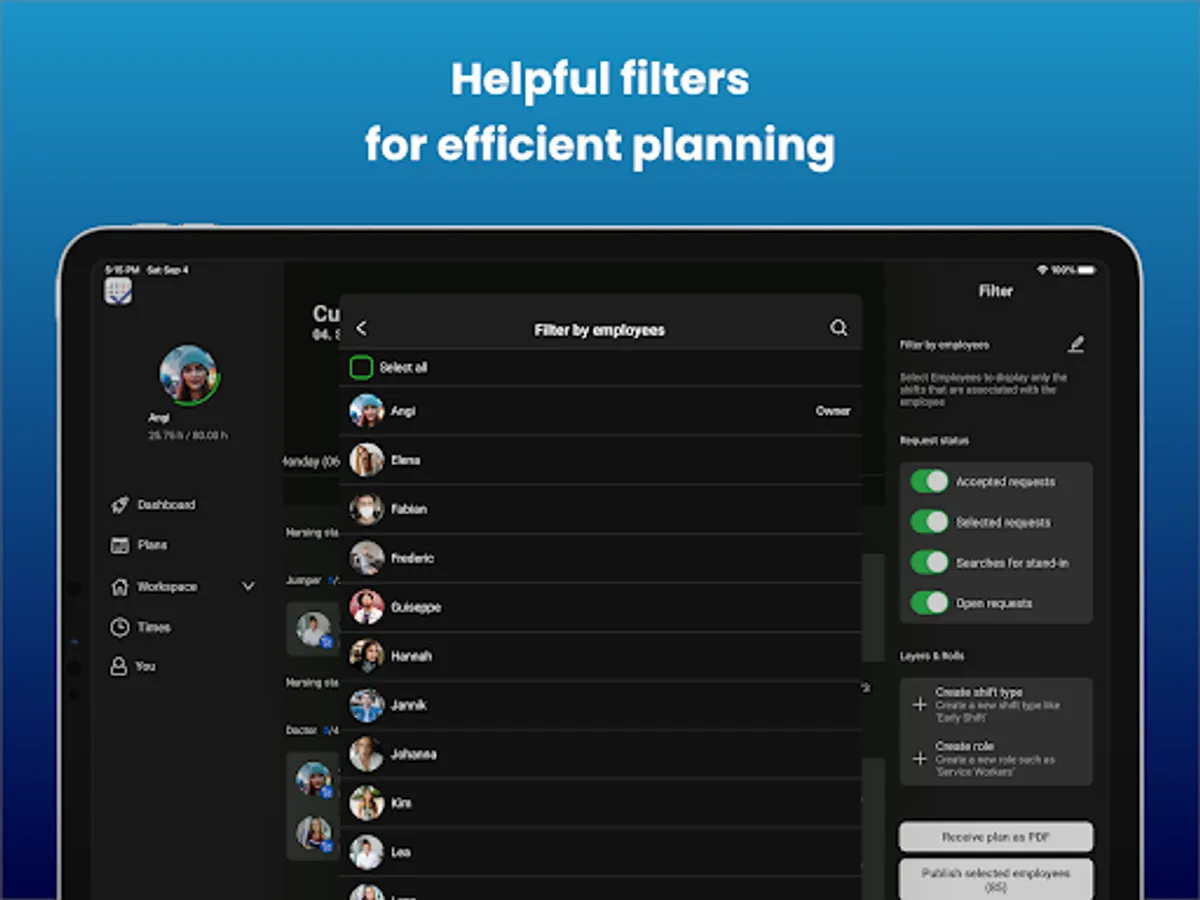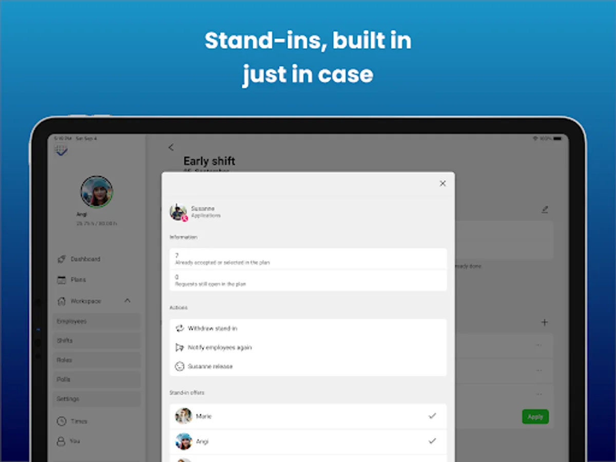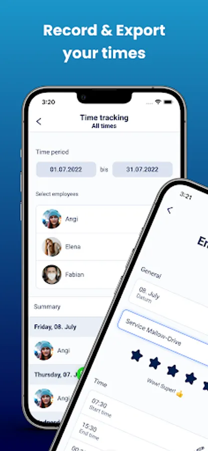 - Legally compliant time recording via (QR code) time clock or manual entry