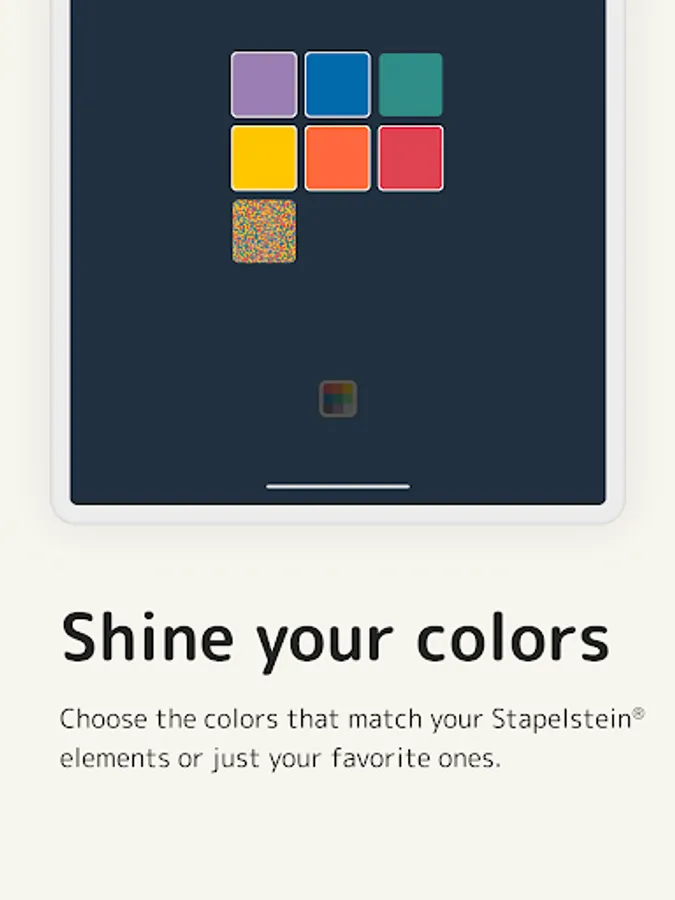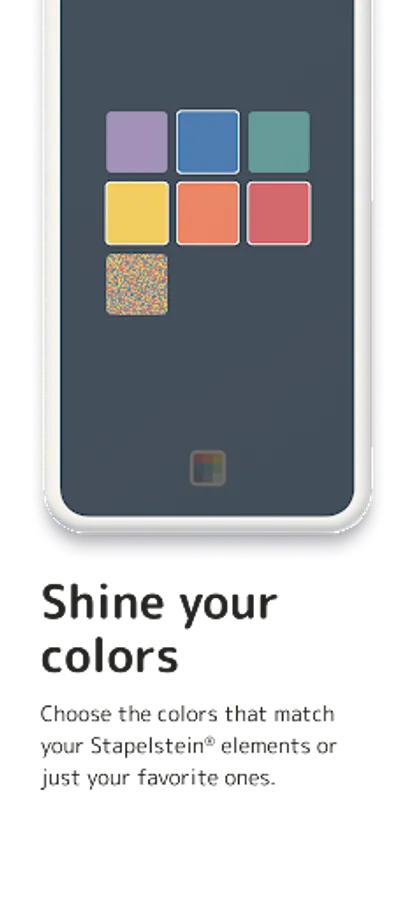 The Change Colors tool is a color cube that you can customize. Choose from six colors and "Confetti" which you like to have for selection. In some cases it is useful if you choose the colors that your Stacking Stones® elements have.