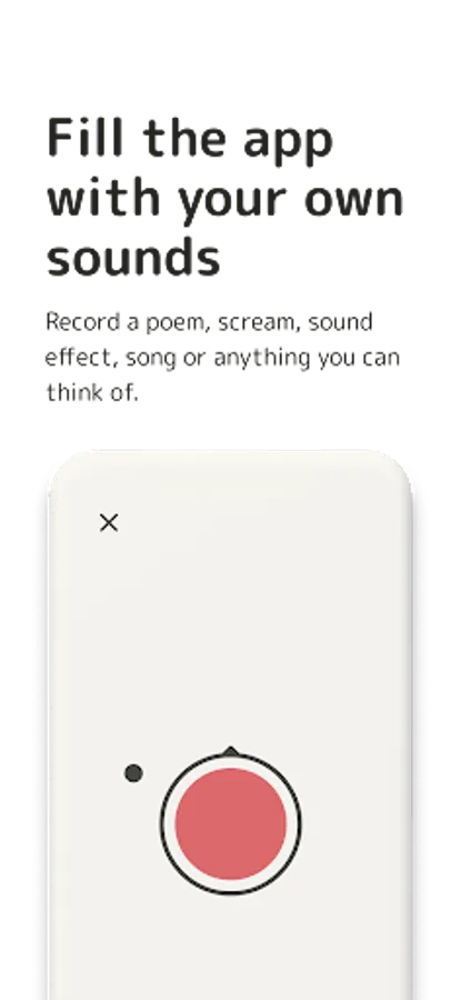 Your sound compass, with which you become active yourself. A small circle serves as an indicator of the direction in which you are currently looking. If you hold down the large circle in the middle, you record sounds. This sound is stored for the area where your indicator was at the beginning of the recording. So fill all areas with your own sounds and play them back by moving around the room.