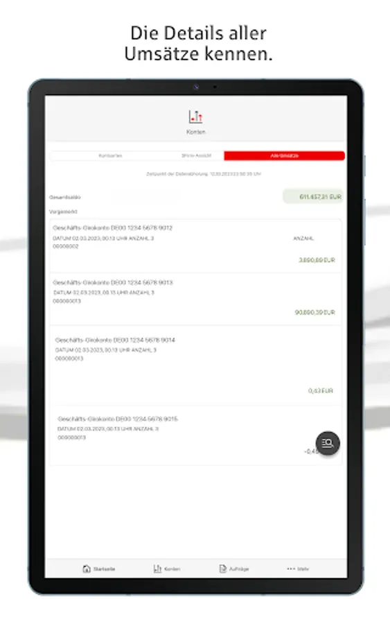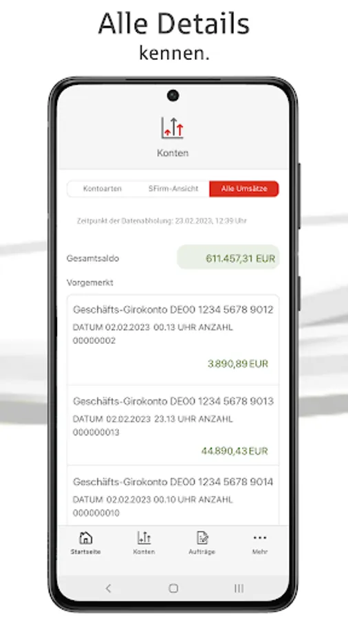 • Prerequisite for the provision of financial data in the app is the coupling of your phone or tablet with your StarMoney Business or SFirm. Practical: the existing user and rights structure is automatically adopted