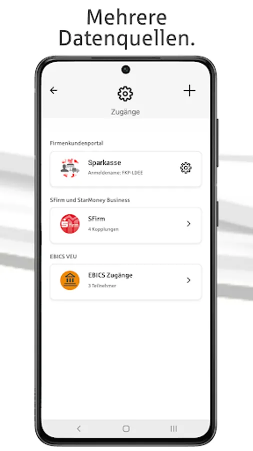• You can integrate your access to the corporate customer portal of your Sparkasse directly into the app