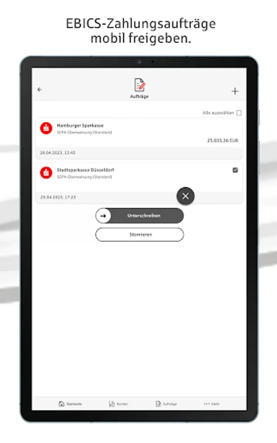 Are you responsible for the finances in a company, company, club, organization or as a self-employed person in your own business? Do you use banking software such as SFirm or StarMoney Business, have access to your savings bank's corporate customer portal or use other EBICS accesses? Then the S-Finanzcockpit is the right app for you!