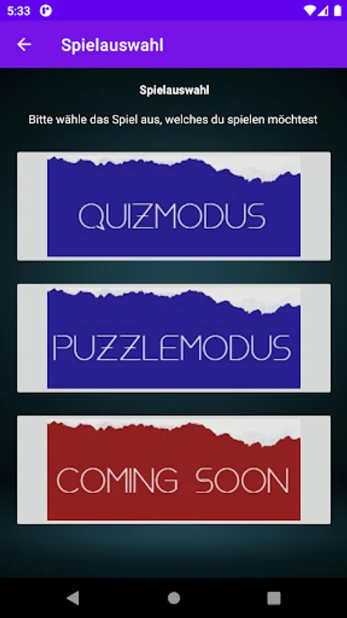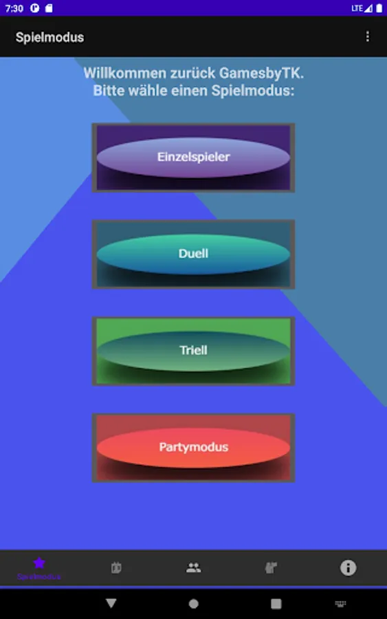 In the app there are different game modes that can be played, whether in single player, duel, triel or with friends in party mode.