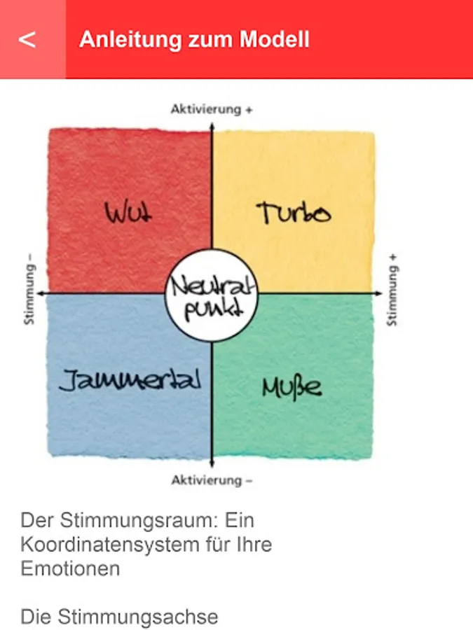 The model of the "humor room" takes into account both the quality and the intensity of an emotion and empties into four basic emotion areas: Turbo, leisure vale of tears and anger. But the neutral point located at the center plays an important role. Learn with your own feelings and better manage the emotions of other people.
