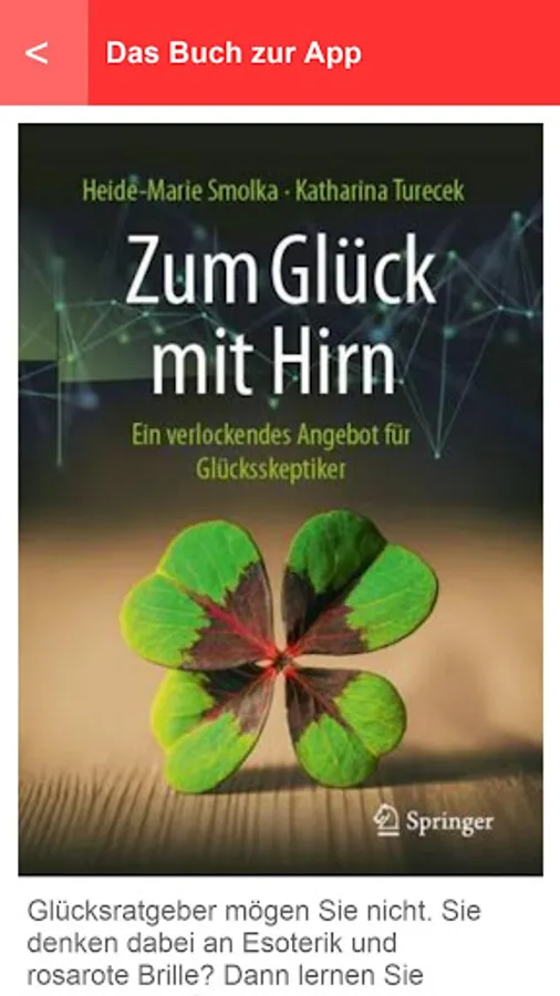 This app shows you using a self-test and to gehörigem training program on how to positive feelings such as happiness, leisure and motivation to make actively reduce stress, anger and grief place.