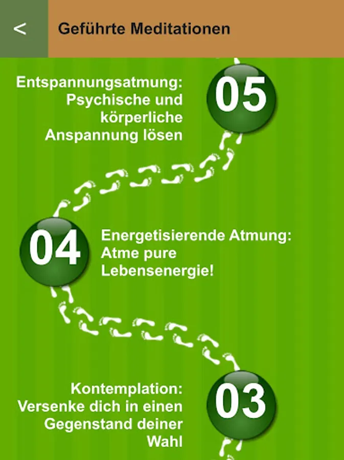 4) Energizing Breathing: Breathe pure life energy! This meditation works especially invigorating and refreshing and is ideally suited to overcome after a long work fatigue and exhaustion.