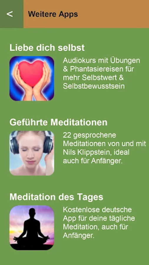 We have designed these guided meditations especially for the curious and beginners. Make you different approaches to meditative introspection before - without any religious or esoteric content, because this is all about, yourself better kennzulernen to do something for your body and your health, reduce stress and to practice your ability to concentrate.