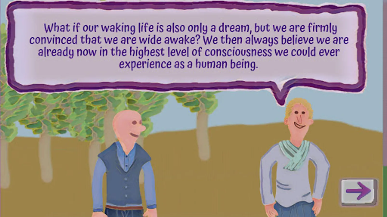 A dialogue with different characters shows us the many possible facets of belief. How do we want to see the world? That is for us to decide.
