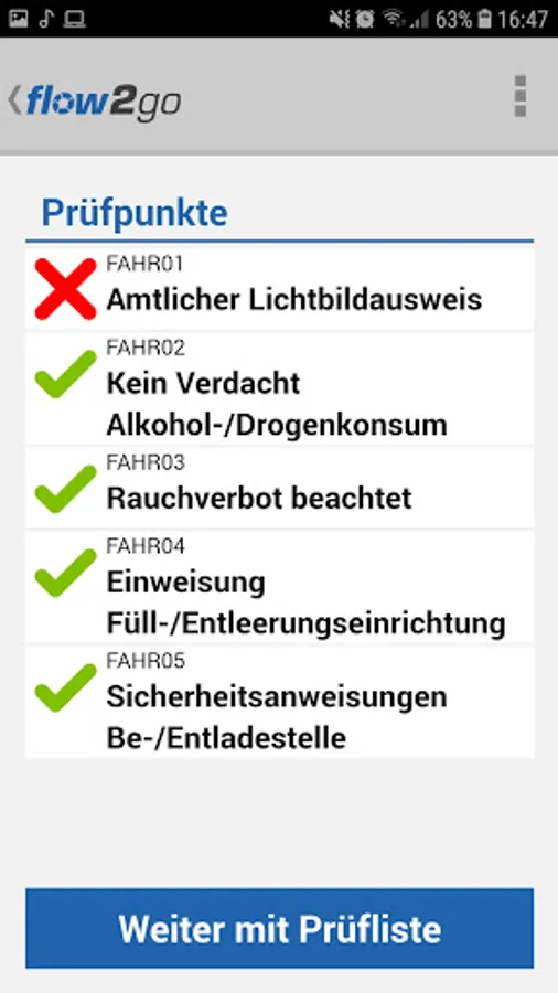BASF flow2go is an integrated app from yard management Schwarzheide to support logistical processes. It can be used during the process to enable checklists for loading and unloading trucks directly at loading points or to support the documentation of checkpoints for plant security.