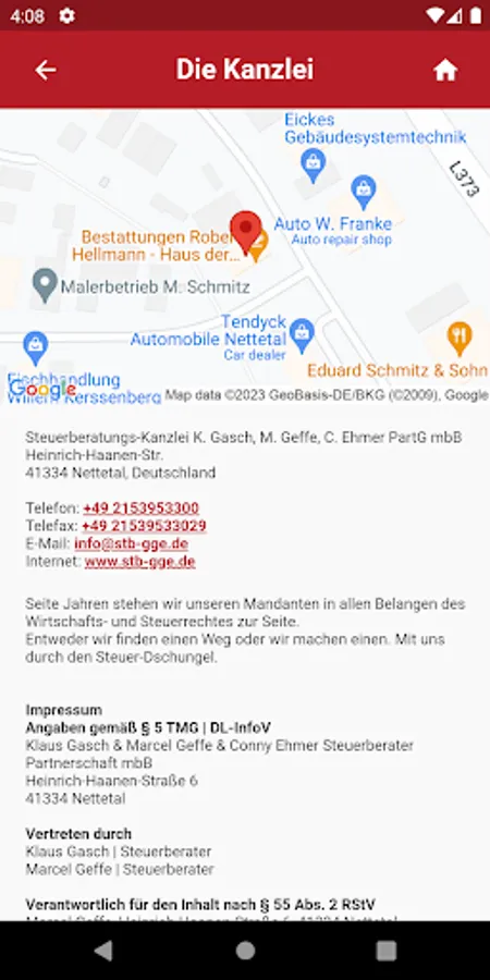 Of course, with this app you always have a direct line to the law firm. All contact details including convenient directions are available there. If you don't have your phone number or email address to hand, just look it up in the app.