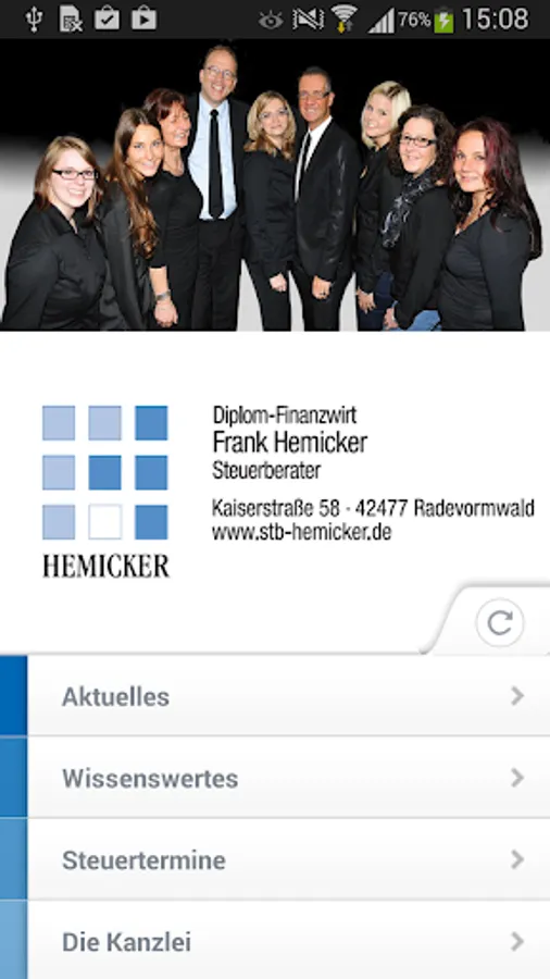 This free app as a service to our tax firm provides you monthly tax specialist information, keeps overdue tax payment dates up to date and offers helpful answers to selected tax issues for any time reference.