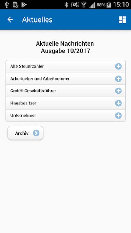 So you will not miss any important tax information with possible consequences for your wallet, keeps our app on the fiscal developments in legislation, case law and financial management to date. It offers to current monthly contributions for example