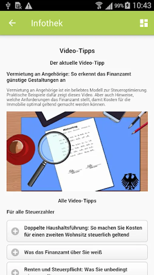 So that you do not miss important tax information with possible consequences for your wallet, our app keeps you up to date with the tax developments in legislation, jurisdiction and financial administration. It offers monthly updates for eg.