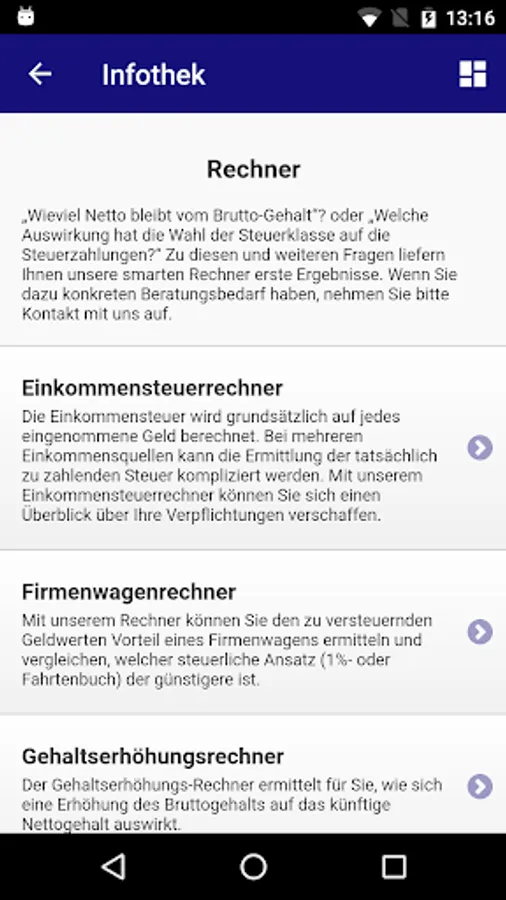 Also on selected tax issues keeps the app information: What is important in running a logbook? What possibilities of tax-privileged content Employee benefits are there? These and other topics provides you with the app the answers