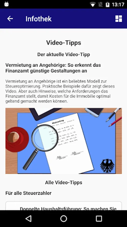 So that you never miss an important tax information with possible consequences for your wallet, keeps our app on the fiscal developments in legislation, court and tax authorities to date. It offers to current monthly contributions for example