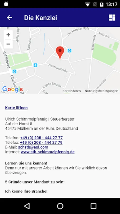 Of course you have this application always have a direct line to the office. All contact details incl. Convenient Directions are available in. If you phone number or email address times not to have on hand, just refer to the App.