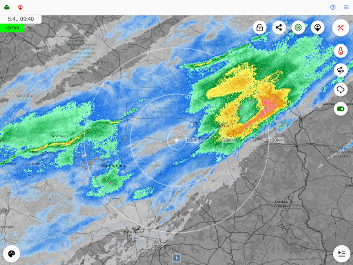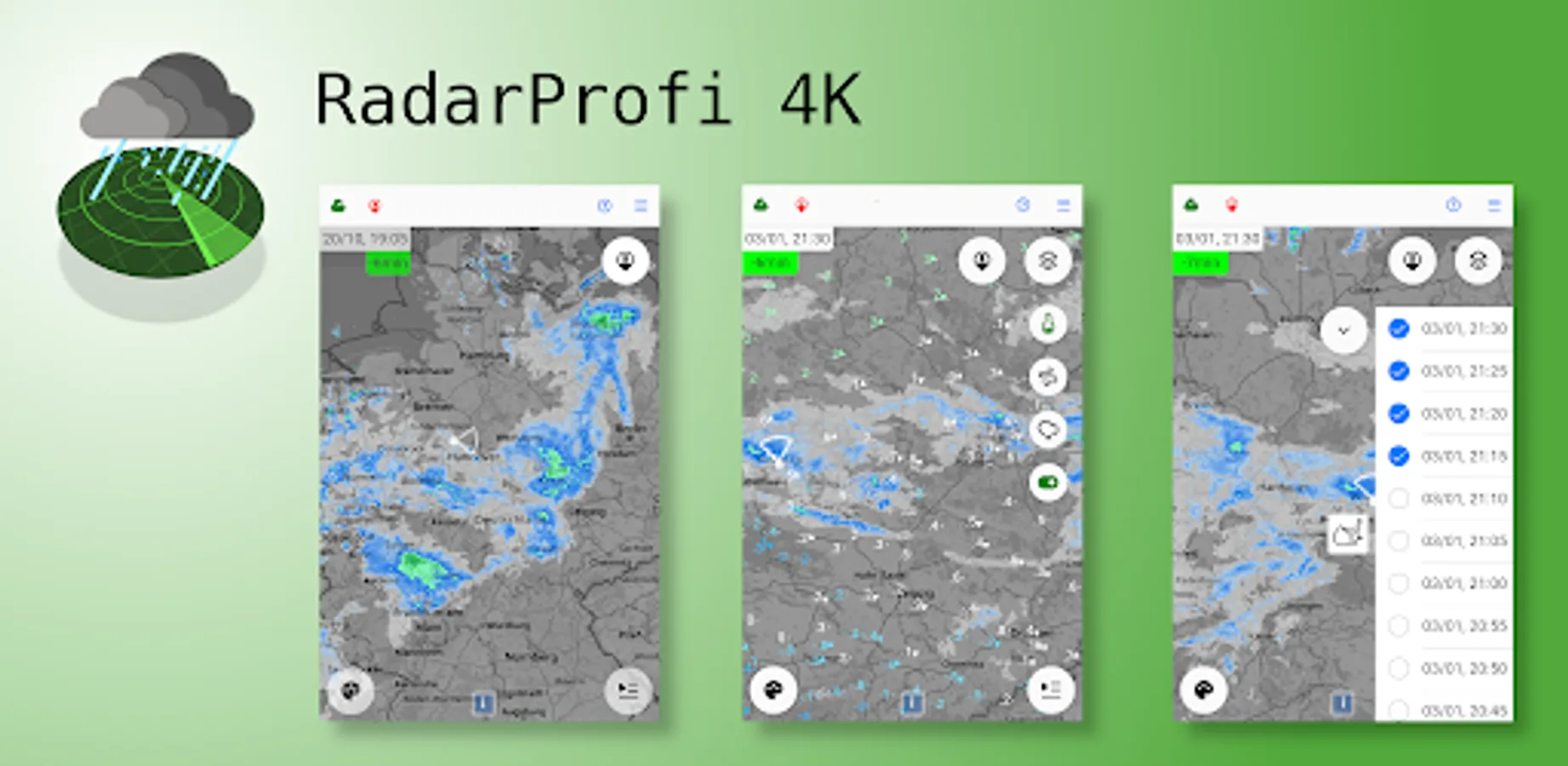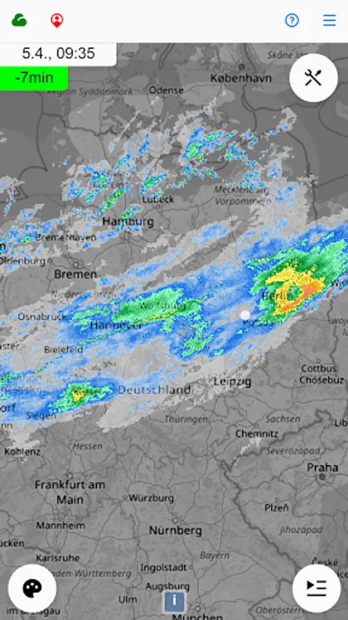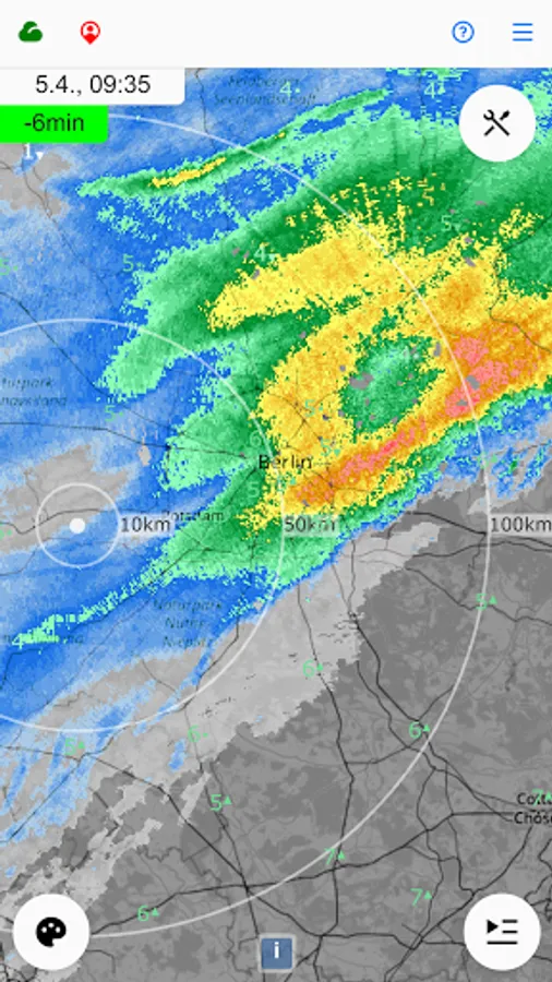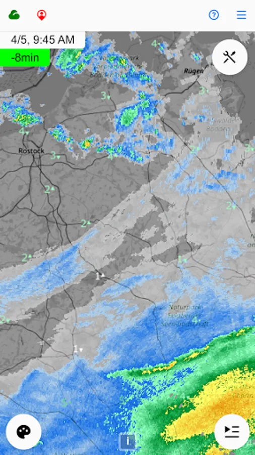 Uniquely in the Play Store, I provide you with the high-resolution 250 meters radar data from the German Weather Service (DWD) in full resolution. In addition, there is also the raw data of the individual sites.