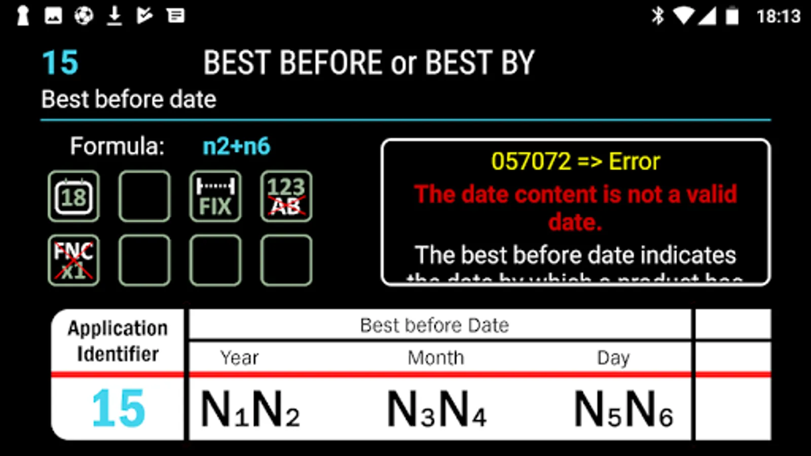 BarcodeCheck validates whether the information in the barcode meets these specifications and supports you with further important information about the identifier ...