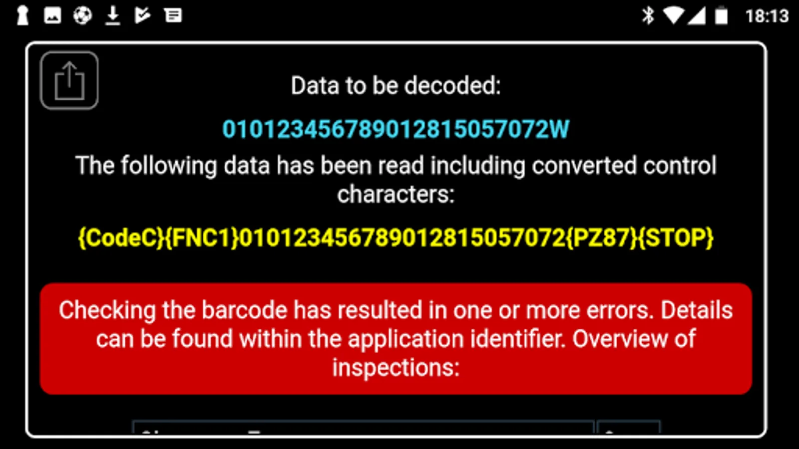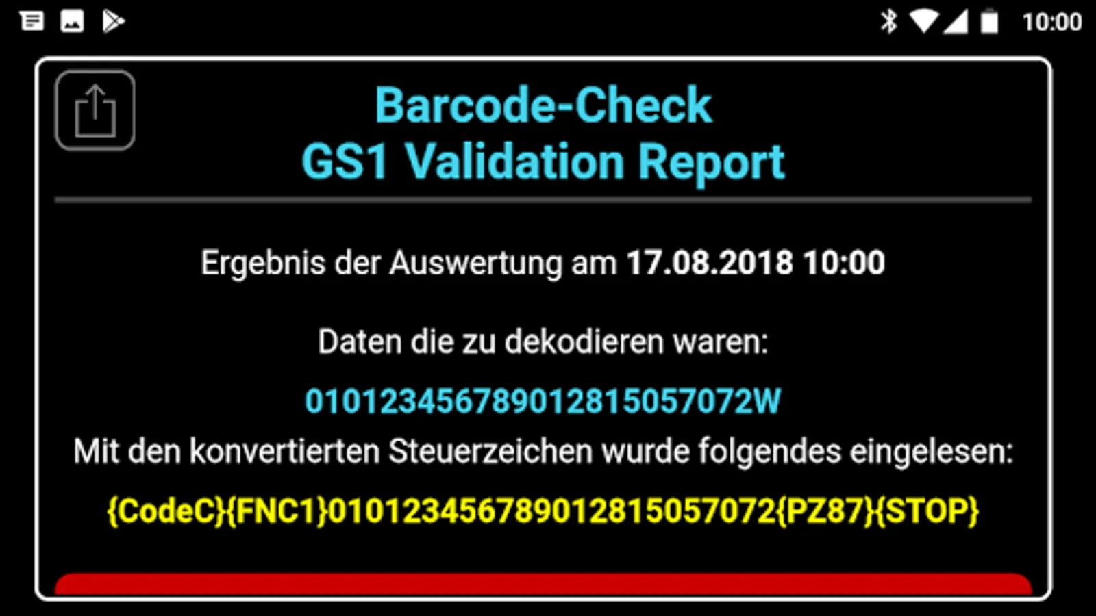 >>> Evaluation of an GS1-Datamatrix 2D Code. Again, with reporting and detailed information.
