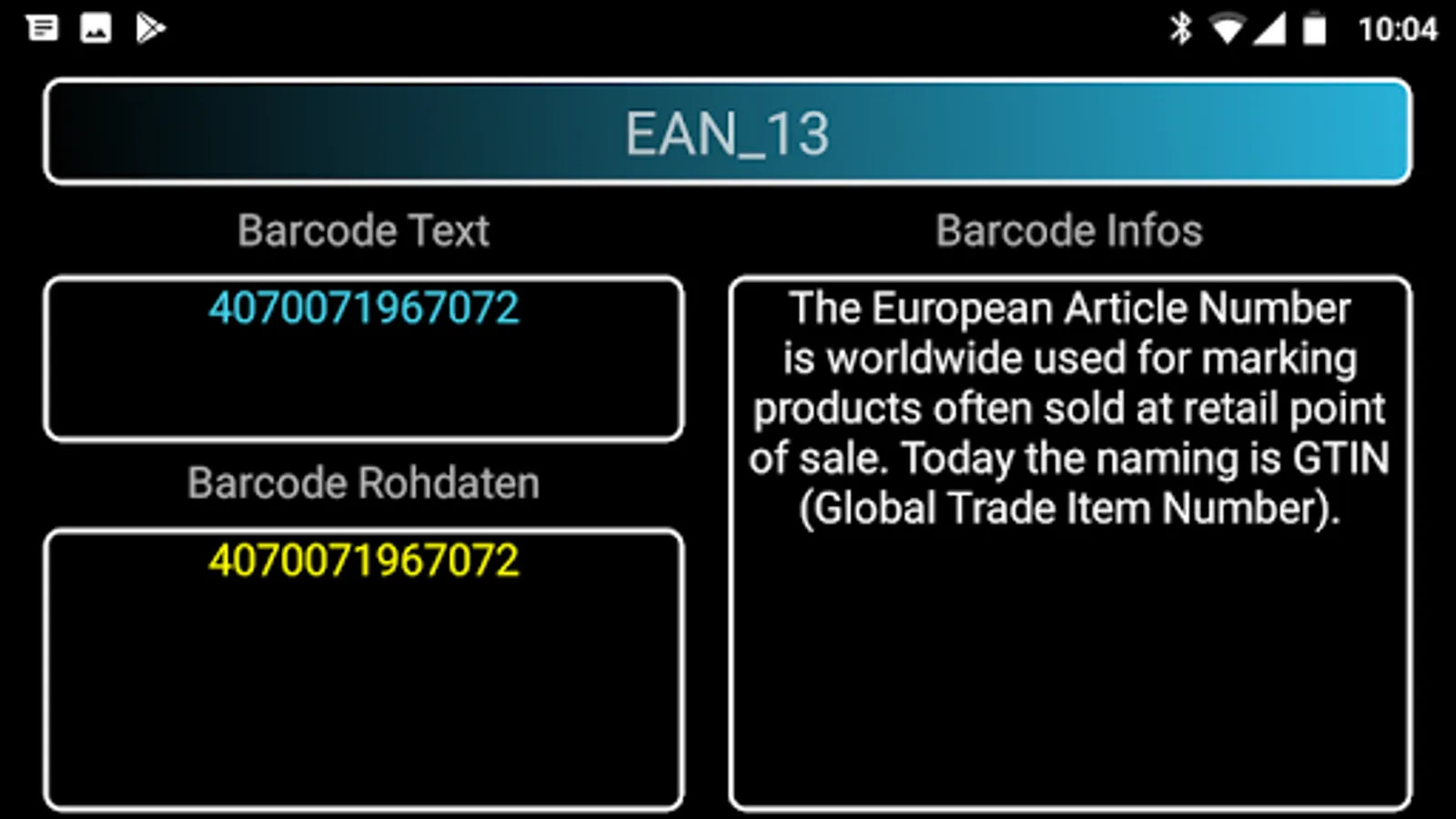 >>> The barcode scanner also allows you to read barcodes that are not checked. The result will show barcode type and content.