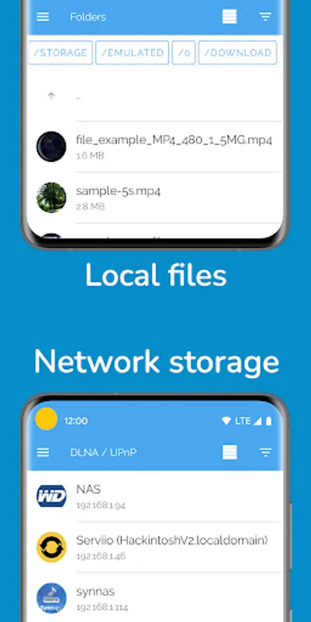 FROM your phone or tablet, other apps, NAS (DLNA/UPnP or Samba), Google Drive, Google+, Dropbox or a webpage