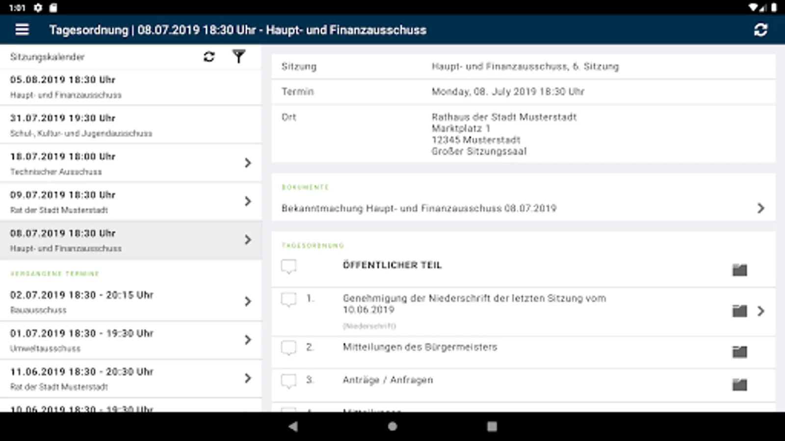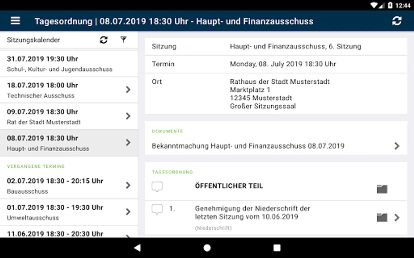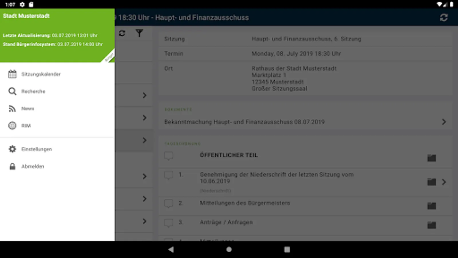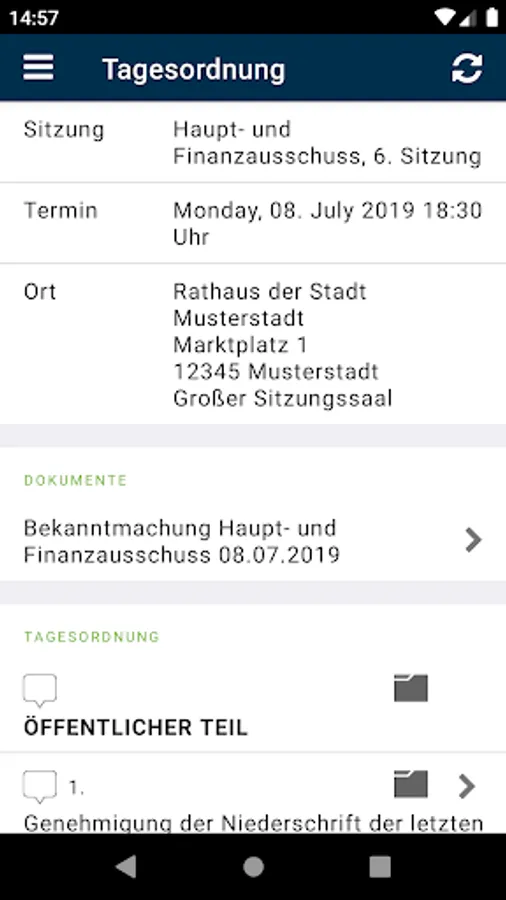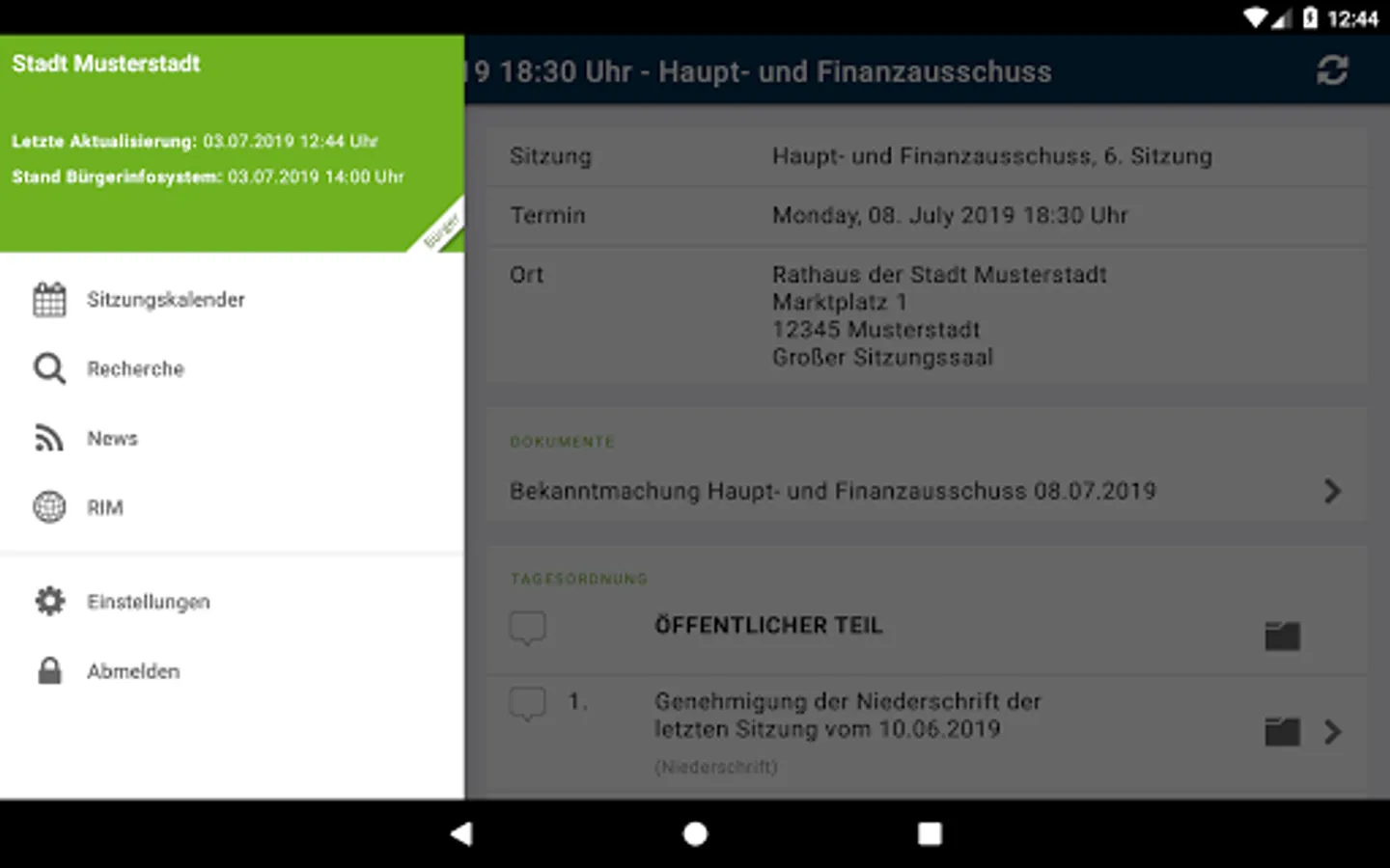 View all public dates, agendas, templates, attachments, minutes, resolutions and news from SD.NET Council Information Management 4 (RIM 4). The data is automatically stored on the tablet or smartphone so that you have access to all the system information at any time, even without an internet connection. Optionally, the available administrations can be sorted by distance in order to easily select an administration in your area.