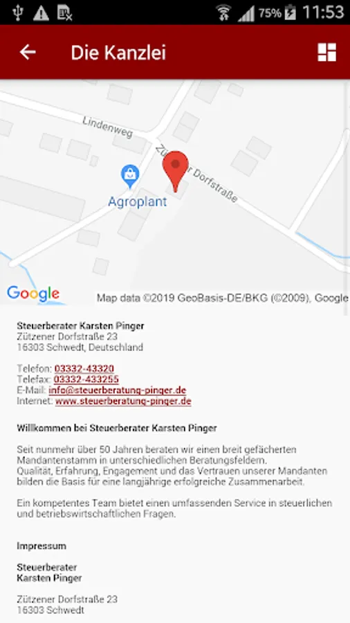 Of course you have this application always have a direct line to the office. All contact details incl. Convenient Directions are available therein. If you phone number or email address times do not have on hand, simply refer to the app.
