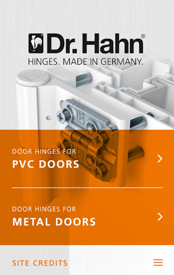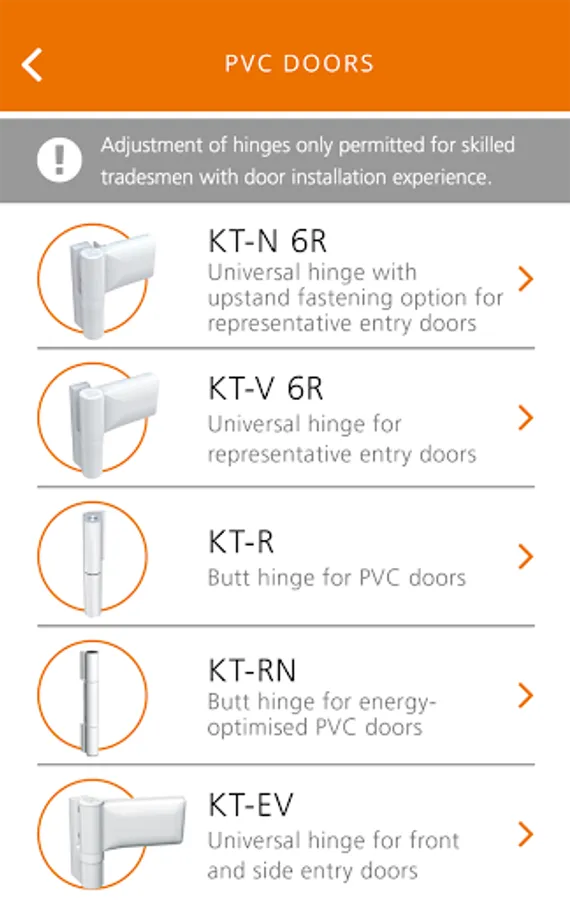 All instructions for an accurate adjustment of Dr. Hahn hinges for metal and PVC doors are included, in particular different versions of 2-piece and 3-piece hinges, as well as fastening options with or without KT-Fix.