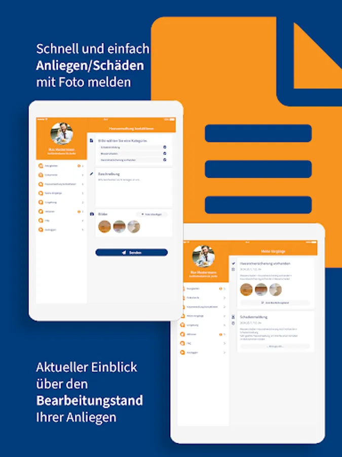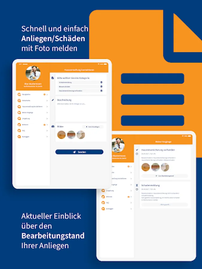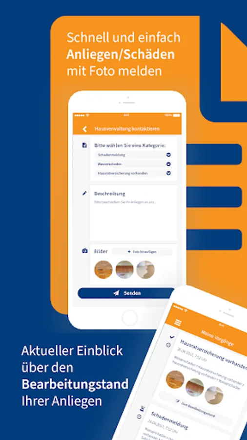 As a tenant or owner you can report damage or concerns directly with photos using our app. Your inquiries are then available to our employees and can also be forwarded to craft businesses.