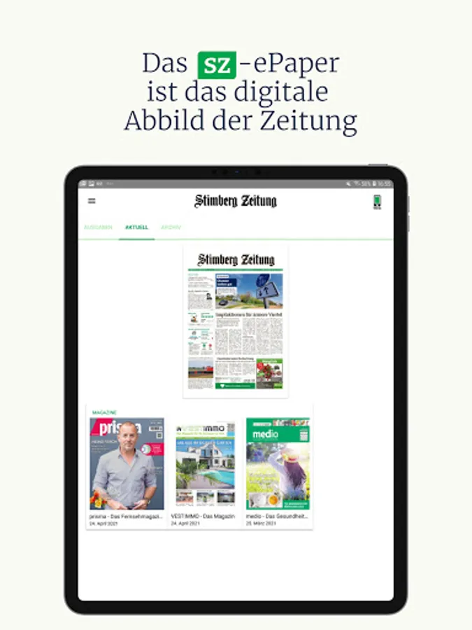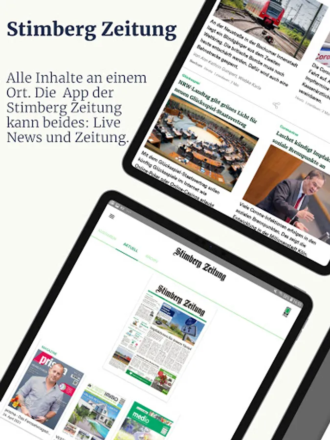 The free app bundles the digital offers of the Stimberg newspaper and offers the complete content of the daily newspaper (subscription required) and the website including all articles and videos.