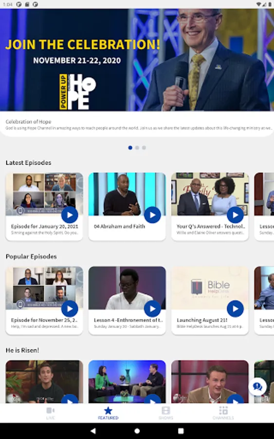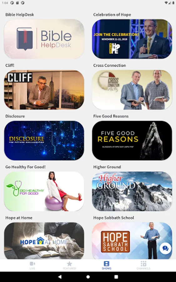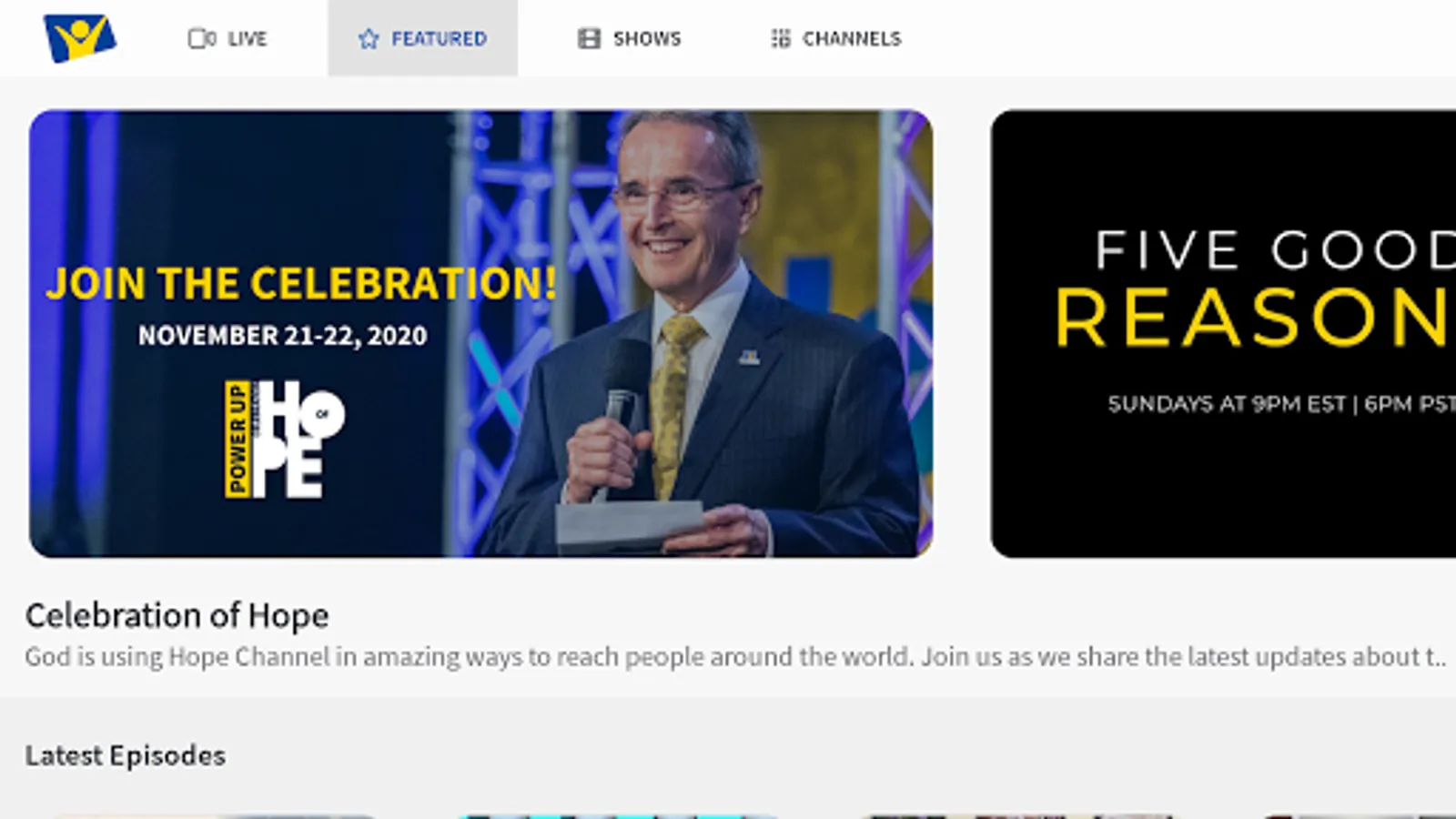 Watch the live broadcast of many of our global Hope Channels. Watch your favorite shows, whenever you'd like.