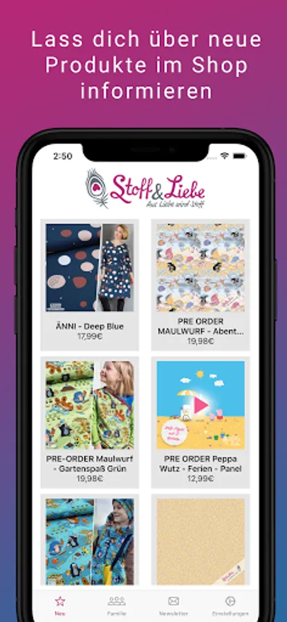 Let the Stoff & Liebe app inform you about new products and events via push notifications. You will also receive a practical overview of our community.