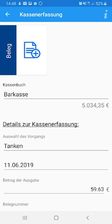 Take a photo of your Barbeleg with Stotax2Go and create a direct cash movement in Stotax Select.