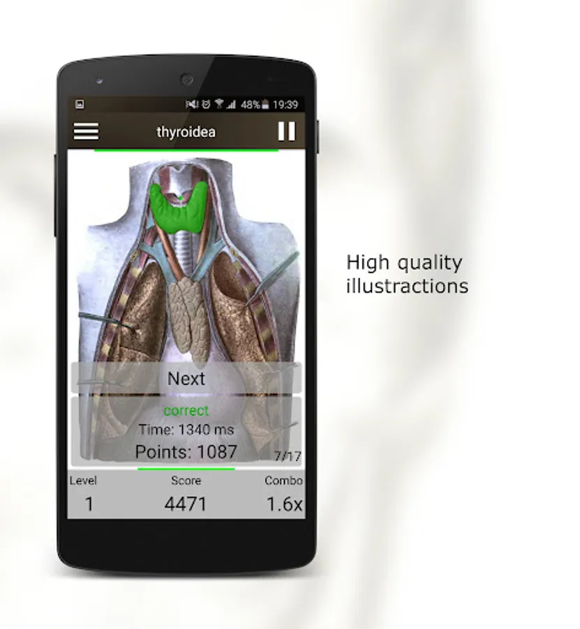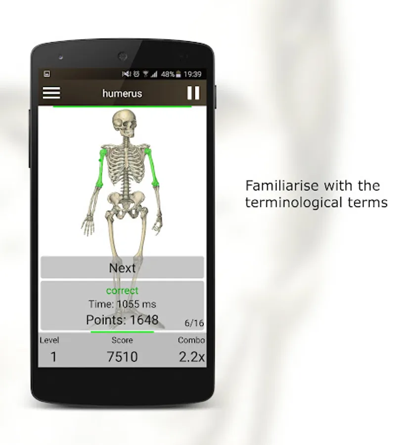 Anatomy Quiz is a game, which provides an easy way to learn anatomical structures like bones, muscles or organs.