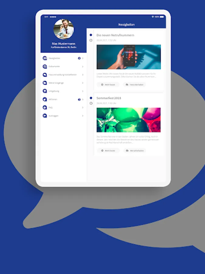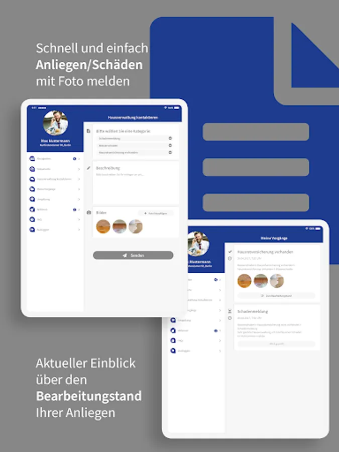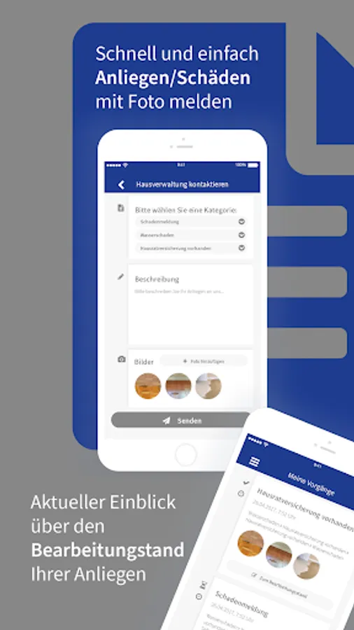As a tenant or owner, you can report damage or concerns directly with photos via our app. Your inquiries are then available to our employees and can also be forwarded to craft businesses.