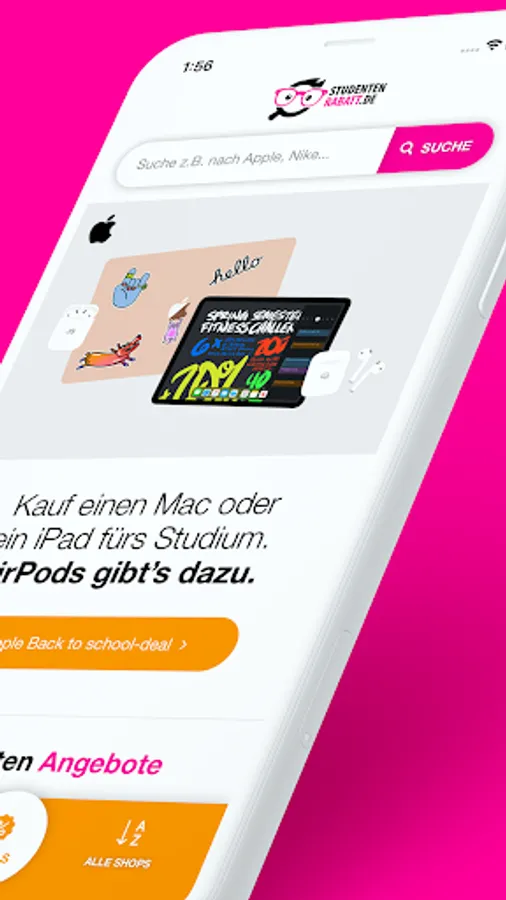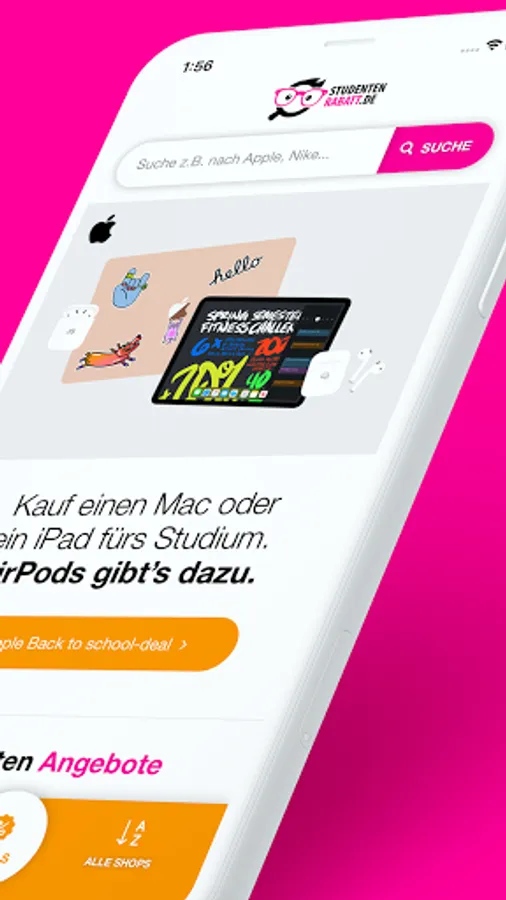 Smart students use the student discount app. We collect and create student discounts and student privileges for you. We try to make it as easy as possible for you. On our website you can find interesting offers, vouchers and the best online deals quickly and easily and save a lot of money!