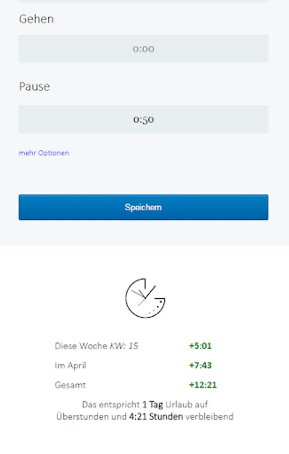 Simple and clear time recording with which you easily and view from anywhere, manage your hours, your vacation and sick days and organize into. By a current weekly, monthly and overall overview of the overtime you have full overview!