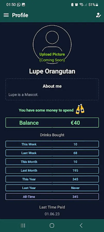 Thanks to a secure authentication and authorization system, only you and the Drink Manager (Bierwart) can modify your data, so no one would be able to sneakily put drinks on your tab anymore.