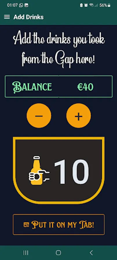 You don't have to write your name or draw lines on a sheet of paper anymore, you can now quickly and easily add drinks to your tab right here in the Gapp!