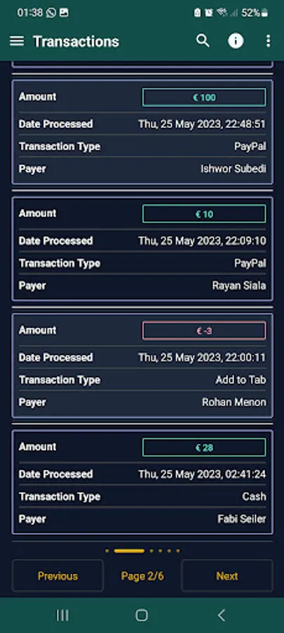 All data, including transactions, are there for everyone to see. Except private data which only you and the Drink Manager can see (e.g: Email, Phone Number).