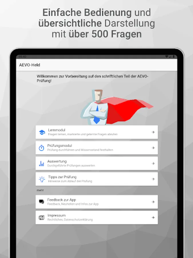 With this app, you can prepare yourself perfectly for the written exam according to the Instructor Aptitude Ordinance (AEVO), also colloquially known as the AdA certificate (training of trainers).