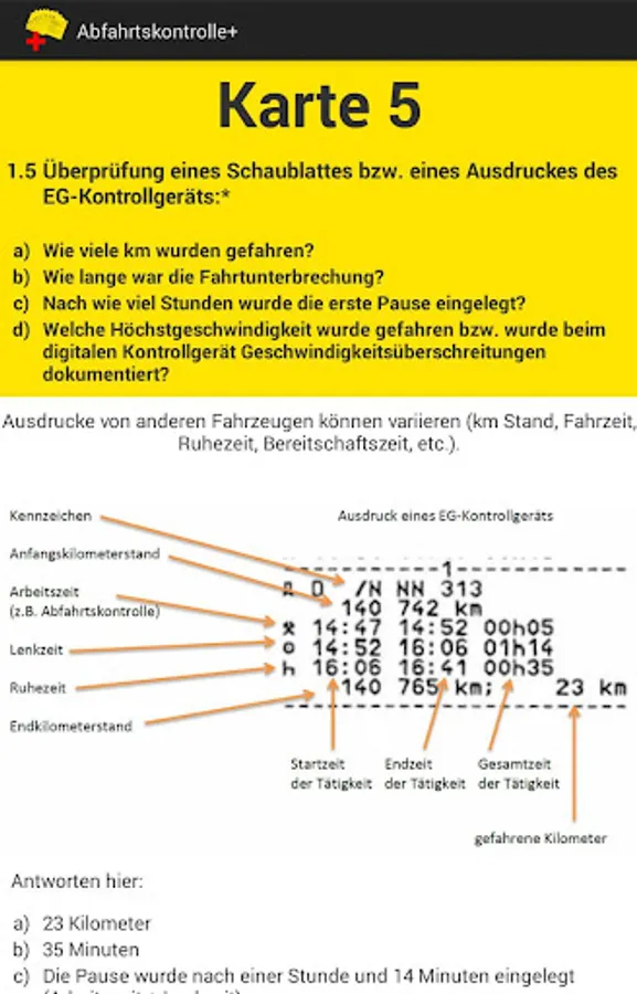 This must be completed by the examinee when acquiring the above-mentioned driving license classes. I.e. one of the 10 cards is chosen and this must then be answered correctly. If a point is answered incorrectly, the examinee may answer the same point from another card.