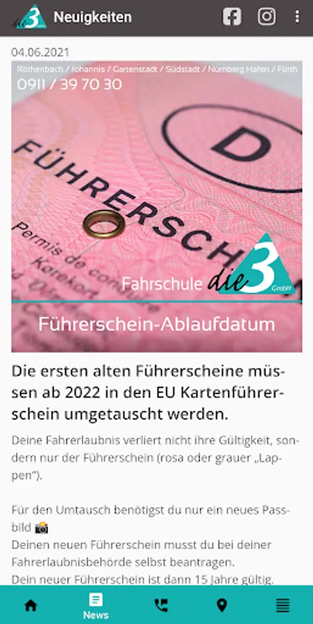 - What news is there at Fahrschule die 3?