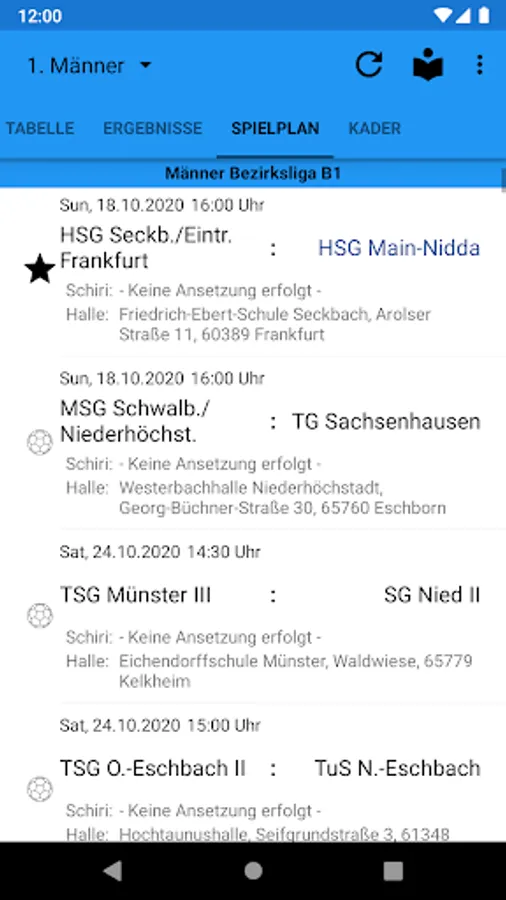 - Home game calendar to display the next home games of all HSG Main-Nidda teams
