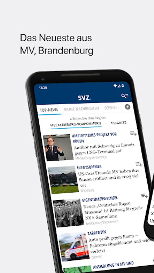News from your region: With the SVZ News app for Android smartphones and tablets, you are always well informed about current events in Mecklenburg-Western Pomerania, Brandenburg and the world. From now on even more local, personal and faster.