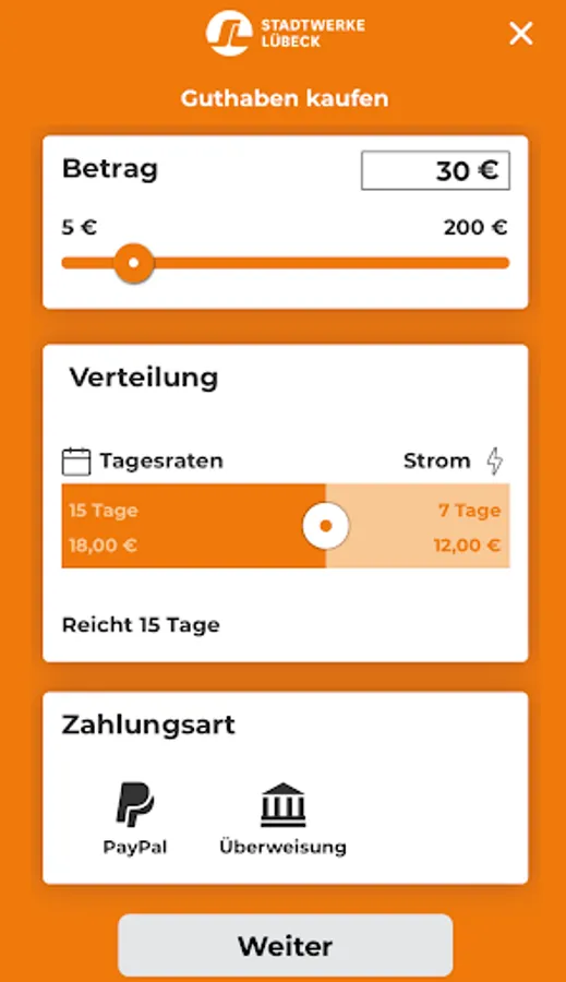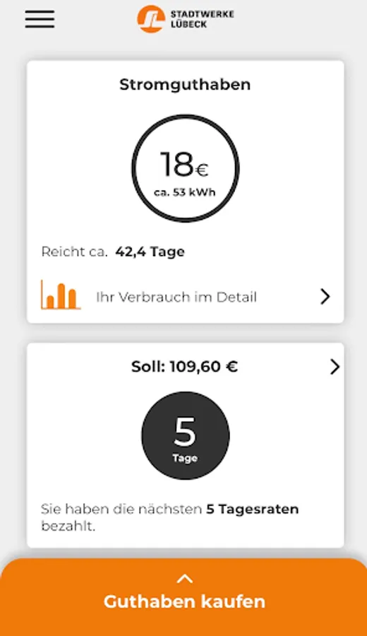 This app can only be used after the conclusion of a contract and in connection with the TraveStromPrepaid Stadtwerke Lübeck.