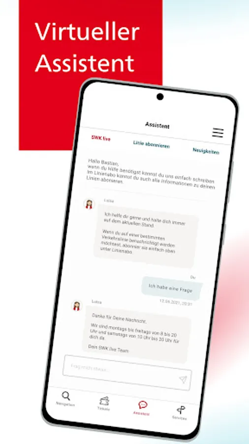 Use our „SWK live” service and the line subscription to get the latest news for your favorite bus and train lines in Krefeld. If something goes wrong with your trip, we won't leave you out in the cold and will help you reschedule your trip via our SWK live chat.