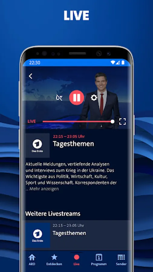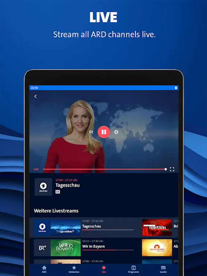 Movies, series, documentaries, shows, news, livestreams and much more: Enjoy your favourite content from the German public broadcasting and media network ARD everywhere. Whether on our website or via app for mobile devices and tv platforms. Our streaming service provides entertainment and information, education and culture, fun programs and gems from our wide variety of regional and national tv programmes as video on demand or via livestream.