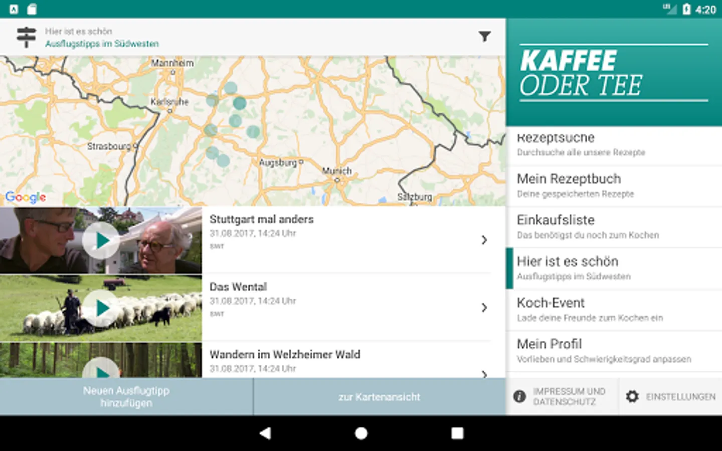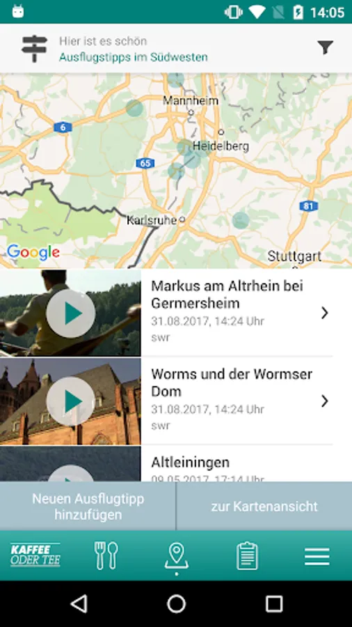 Send us your ideas, photos and videos for the TV show "coffee or tea" - every Monday to Friday from 16:05 on SWR television. With this app you're in.